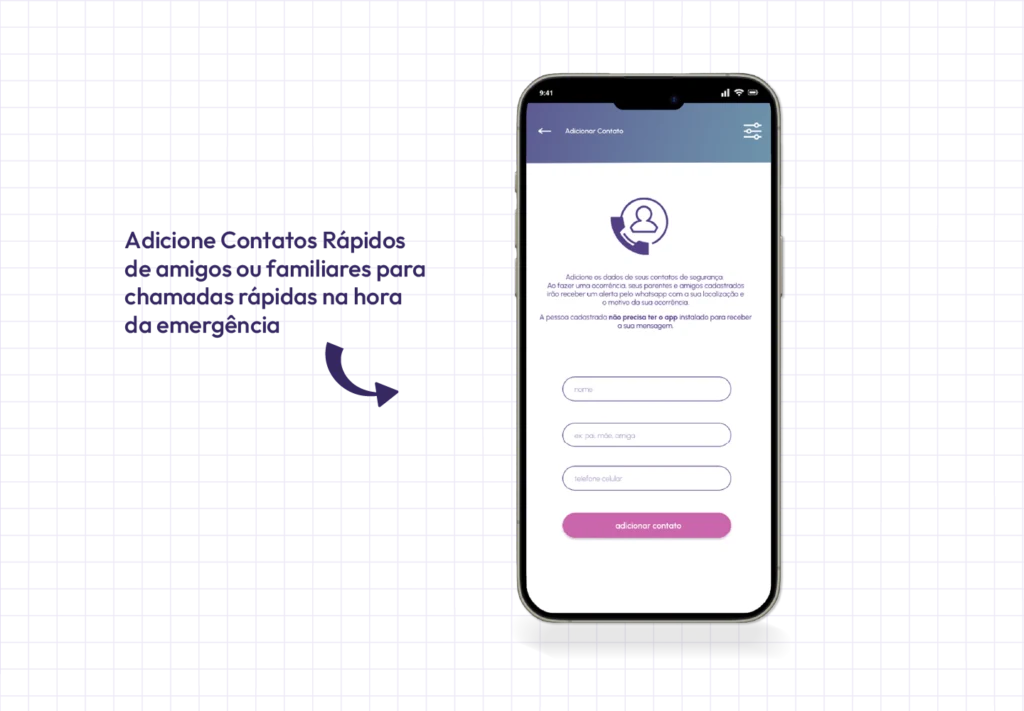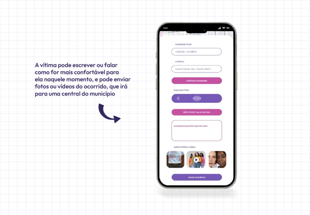 Pro Elas – Segurança e Denúncia ao Alcance de Um Toque Design centrado na proteção da mulher.